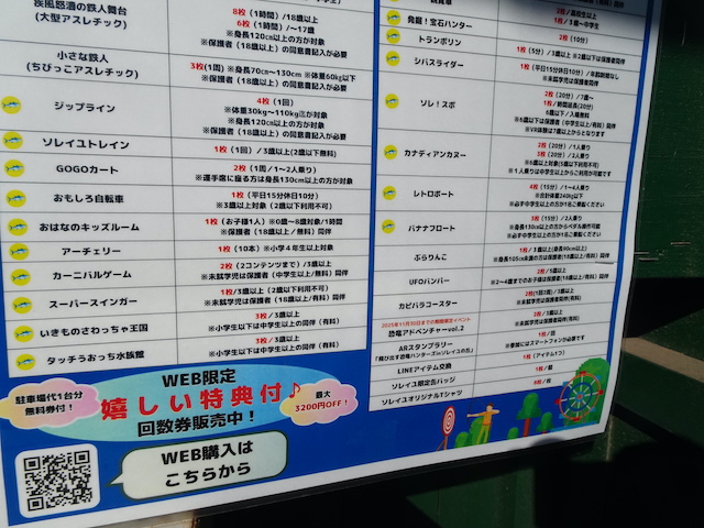 遊具や飲食施設は別途費用が発生します。