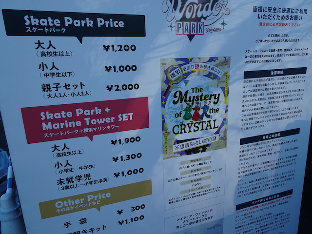 ※「スケートパーク+マリンタワーセット」チケットの販売はスケートパーク受付のみでの販売となります。